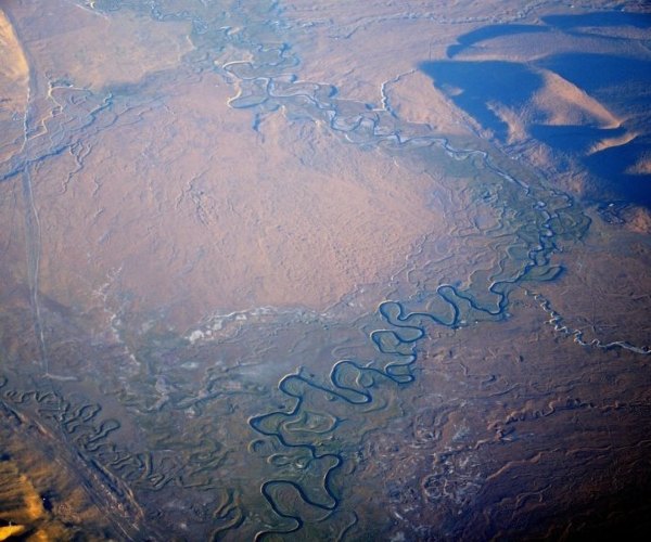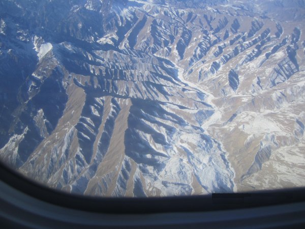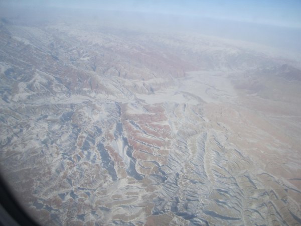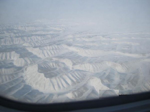 跟着飞机的升高,机身下呈现了如许的地貌,平易近航机不克不及下降。西端伸入哈萨克斯坦境内,顿时就要下降了。变成了一幅标致的水彩画儿,还有标致的空姐的不断报歉声......